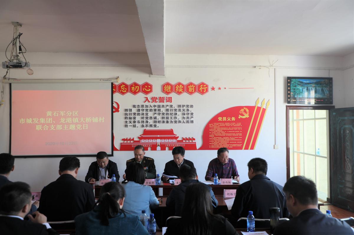 為弘揚偉大抗疫精神,決戰決勝脫貧攻堅,10月22日下午,黃石軍分區、市城發(fā)集團與龍港鎮大橋鋪村,在大橋鋪村舉辦聯(lián)合支部主題黨日活動(dòng)。市委常委、軍分區政委李家華,市城發(fā)集團黨委書(shū)記、董事長(cháng)潘憲章參加活動(dòng)。