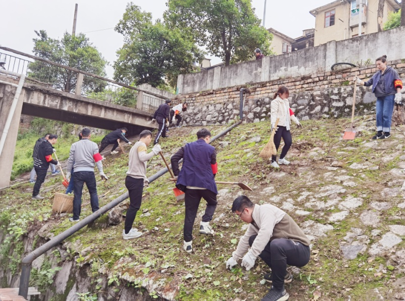 在社區工作人員的幫助配合下,志愿者們團結協(xié)作,合理分工,對轄區內3塊坡體上的雜草及公共區域的垃圾雜物等進(jìn)行集中清理。