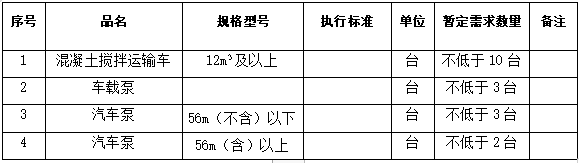 運輸數量:預拌混凝土暫估為年產(chǎn)40萬(wàn)m3;自有設備:自中標之日起至2023年1月30日前必須在商砼分公司安排10臺以上符合國家標準GB/T26408-2020《混凝土攪拌運輸車(chē)》、適應政府限載、環(huán)保、安全要求的12方及以上混凝土攪拌車(chē)和2臺天泵24小時(shí)駐站承運混凝土,之后的運載能力應滿(mǎn)足生產(chǎn)運輸需要。投標人必須提供車(chē)輛登記證書(shū)以證明車(chē)輛所有權歸投標人或投標關(guān)聯(lián)人,投標關(guān)聯(lián)人需提供授權委托書(shū)。