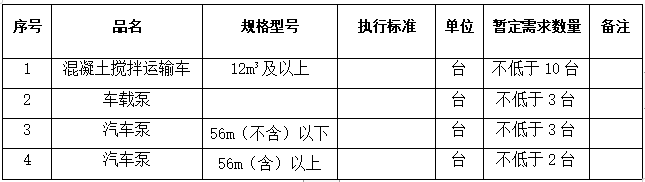 運輸數量:預拌混凝土暫估為年產(chǎn)40萬(wàn)m3;自有設備:自中標之日起至2023年1月30日前必須在商砼分公司安排10臺以上符合國家標準GB/T26408-2020《混凝土攪拌運輸車(chē)》、適應政府限載、環(huán)保、安全要求的12方及以上混凝土攪拌車(chē)和2臺天泵24小時(shí)駐站承運混凝土,之后的運載能力應滿(mǎn)足生產(chǎn)運輸需要。投標人必須提供車(chē)輛登記證書(shū)以證明車(chē)輛所有權歸投標人或投標關(guān)聯(lián)人,投標關(guān)聯(lián)人需提供授權委托書(shū)。