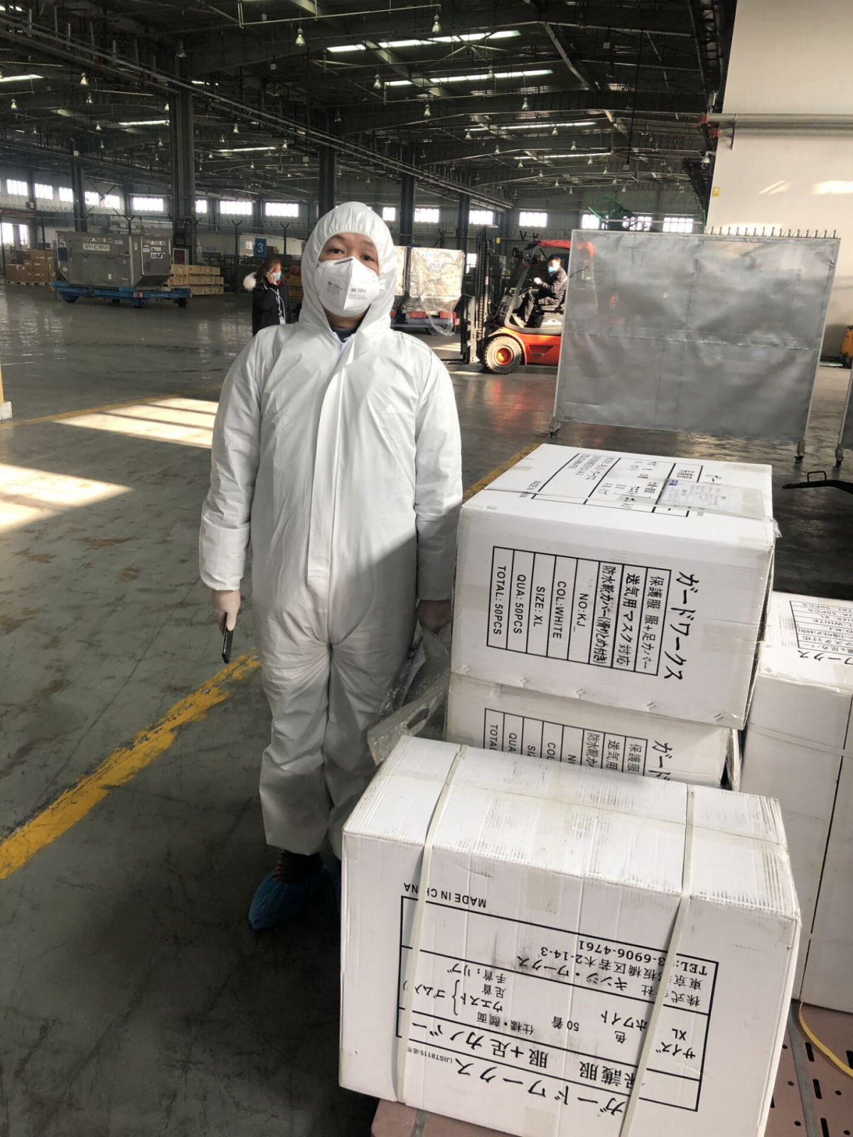 6天后,幾經(jīng)輾轉,我們終于拿到了這批防護服,凌晨1點(diǎn)鐘,前去接收物資的同事在武漢天河機場(chǎng)拍了現場(chǎng)圖片給我。后來(lái)我得知為了這批防護服,羅女士連續一個(gè)多星期只休息三四個(gè)小時(shí),忙于打通各個(gè)環(huán)節運送物資。
