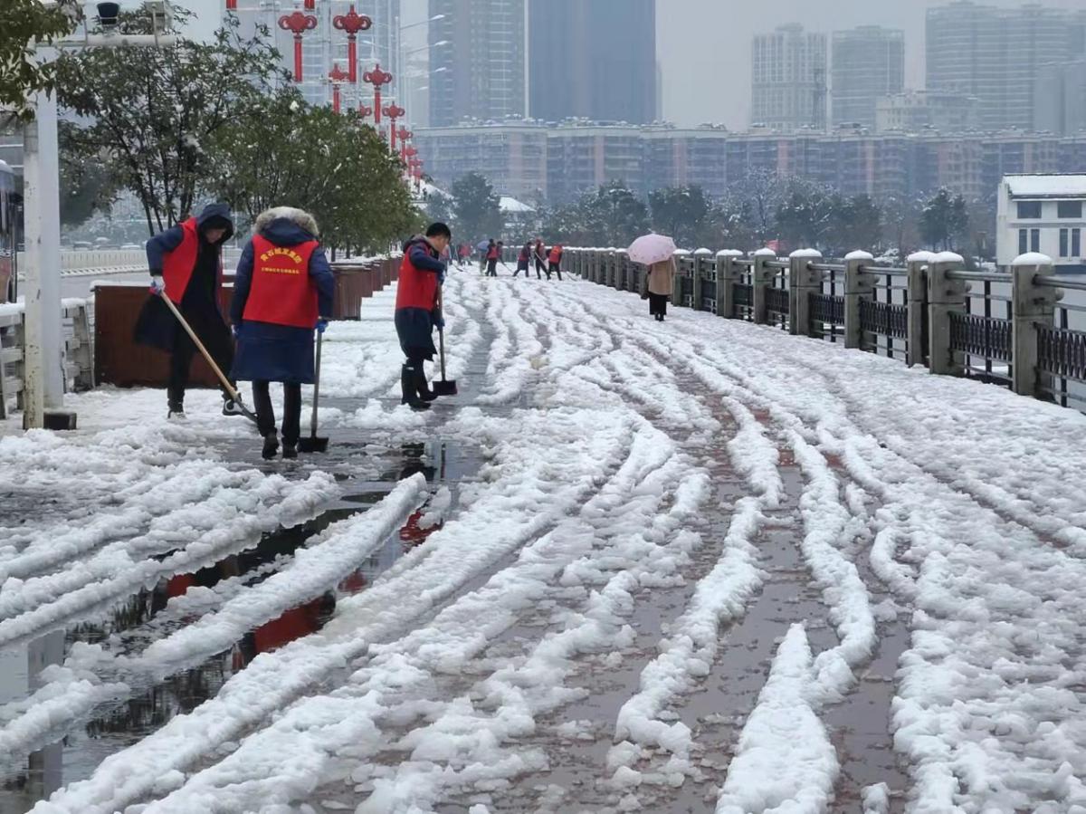 當天上午,城發(fā)集團抽調機關(guān)、自來(lái)水公司、環(huán)投公司、更新集團、建工集團等志愿者力量,組建掃雪除冰突擊隊,前往包保社區和路段開(kāi)展掃雪除冰工作,累計出動(dòng)120余人次,完成路面積雪清掃工作,同時(shí)鄂東醫養集團機關(guān)后勤職工自發(fā)組成“除雪志愿隊”對醫院道路進(jìn)行清掃,確保社區居民和行人出行道路安全。