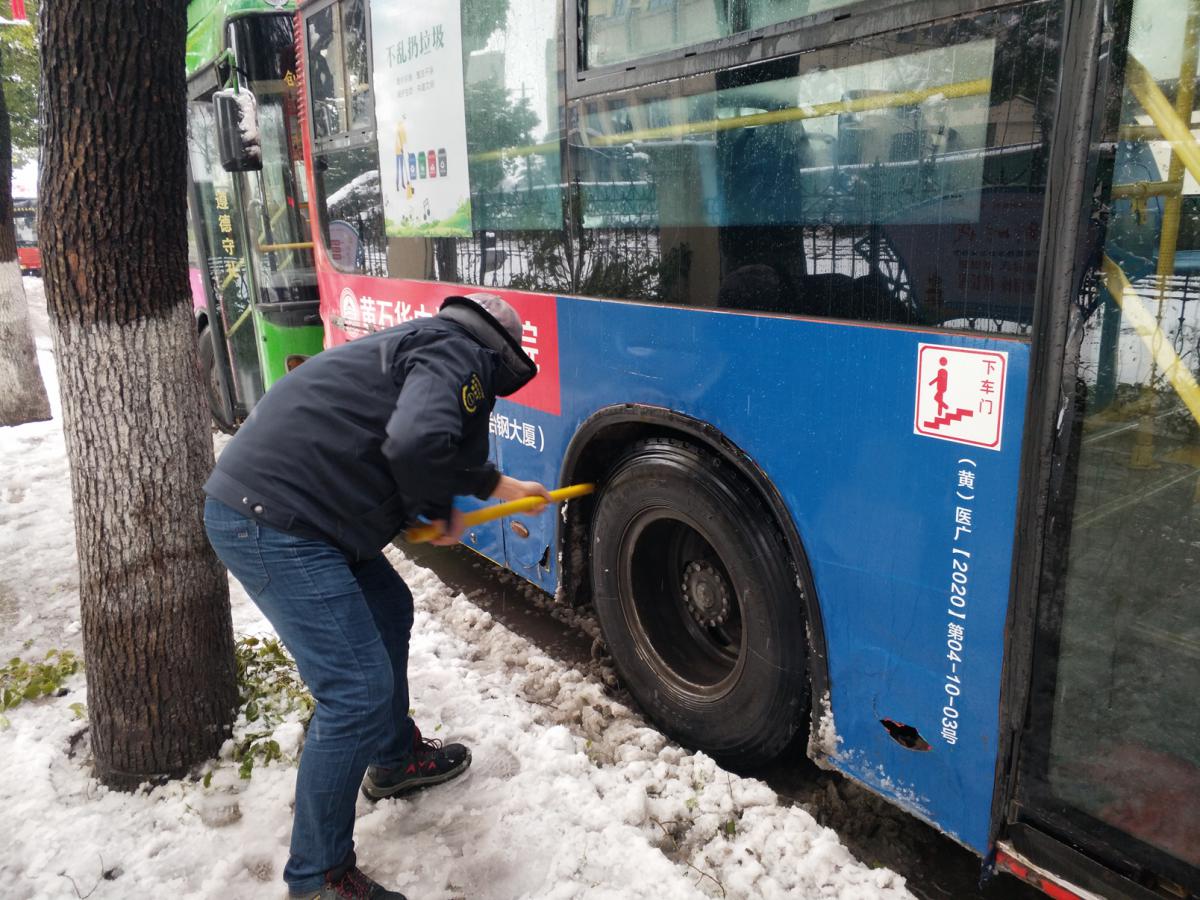 為了保障虎年首個(gè)工作日出行,公交集團立即啟動(dòng)冰雪惡劣天氣應急預案,對2路、9路等10余條線(xiàn)路進(jìn)行臨時(shí)調整,確保行車(chē)安全。各運營(yíng)公司對各車(chē)輛進(jìn)行發(fā)車(chē)前安全狀況排查,確保車(chē)輛性能完好,現場(chǎng)叮囑駕駛員減速慢行,注意行車(chē)安全。同時(shí)組織60余人在城區主要公交站點(diǎn)鋪草墊、鏟雪及清理掉落樹(shù)枝,現場(chǎng)疏導車(chē)輛安全進(jìn)出站,提醒駕駛員減速慢行,引導乘客安全候車(chē)、乘車(chē),幫扶行動(dòng)不便的市民乘車(chē),全力保證車(chē)輛的安全運營(yíng)。